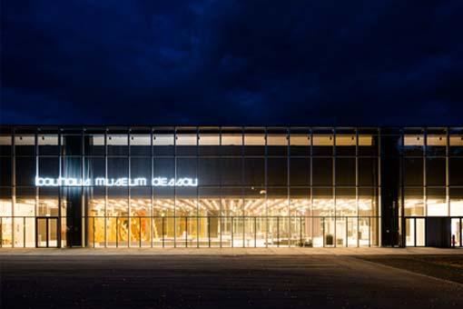 。設計參考了位于德紹的包豪斯學校中的一些主要特征,包括玻璃幕墻、兩層樓高的連橋、建筑整體的通透感、輕盈感和平整的外表面。以此為基礎,新的美術館將展示一個對現代文化的宣言,用最準確的語言來描述就是“最佳狀態的低分辨率版本”。新博物館將已經肖像化的建筑文化遺產“少既是多”和現代文化宣言“少的年代”聯系在一起。它簡潔的建筑體塊位于城市和公園,建筑物和自然之間。建筑的位置從原來的歷史建筑限制線往后退以彰顯它和城市歷史建筑的連續性。