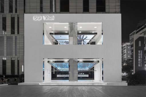 唐寧書店四海城店位于廣州番禺四海城廣場的核心位置,前接下沉廣場,背靠住宅,鬧中取靜。以社區為基,該項目的選址優勢在疫情下得到放大。在原規劃中,橫跨四十多米的兩層建筑屬天臺馬場的配套設施,故空間非常低矮,結構不規則,難以作為商業空間使用。立品團隊通過以下一系列設計手法來改善空間布局。