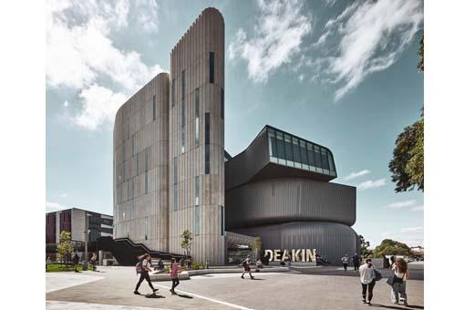 由伍茲貝格設計的澳大利亞迪肯大學法學院大樓如雕塑般伏臥在校園的一角,協調著這所大學位于墨爾本、如碎片般分裂的伯伍德校區。該建筑打造了通往埃爾加路區(Elgar Road Precinct)的“燈塔”和門戶,以此為整個城市、校園構筑了定位地標和尋路點,并增強了校園整體的空間體驗。迪肯大學法學院大樓有著引人矚目的幾何形體,其設計靈感來源于內部學習空間的創新融合,并且其中每個空間的設計都開始于對不同新興教學方法的詮釋,也因此,大樓內的講堂擯棄了傳統的設計方式。