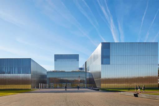 美國陸軍國家博物館(NMUSA)是一個具有重要國家意義的文化機構(gòu),也是第一個講述美國軍隊最古老分支故事的博物館。充滿象征意義的體驗從入口的小道開始,在這條路上,透過層層樹影和長長草坪可以看到覆有不銹鋼板的博物館。簡潔而銳利的外立面由8英寸厚的防雨不銹鋼板構(gòu)成,能夠反射出周圍的場景,使建筑隨著時間和季節(jié)的變化呈現(xiàn)出不同的觀感。通過SOM綜合且積極主動的環(huán)保設(shè)計,博物館最大限度地減少了能源和水的使用,并為游客和員工打造了健康的空間,讓他們可以積極地參與到室外環(huán)境中。