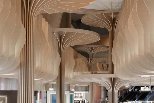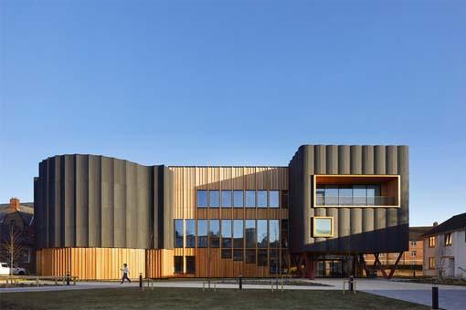 約克圣約翰大學創意中心的設計由三個主要概念生成。第一個主要概念為“可持續設計”:無論是運營或隱含碳,創意中心都是一棟真正的可持續建筑,并有著堅固的木結構框架及簡單的微氣候環境控制系統。第二個主要概念為“樞紐空間建造”:主中庭空間為建筑中所有元素的鏈接紐帶,并蘊含著高等教育學府中為跨學科合作所打造的“第三空間”的愿景。第三個概念則為“肌理融合”:創意中心充分利用了其靠近約克大教堂的地理位置優勢,并讓大學可以融入周邊城市的歷史遺產肌理中。人們可以在整個中庭、演奏大廳、以及至關重要的聽音室中,享受在精心設計的建筑框架中的大教堂景色,由此將令人驚嘆的歷史遺址風景如畫的景色帶入建筑之內。